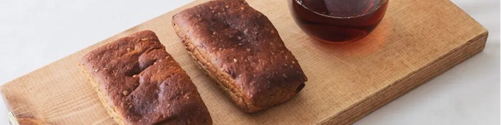 ベースブレッドには全粒粉のほか米ぬかや大豆粉などがふんだんに使われていて、普通のパンよりもゴワゴワした食感になっています。