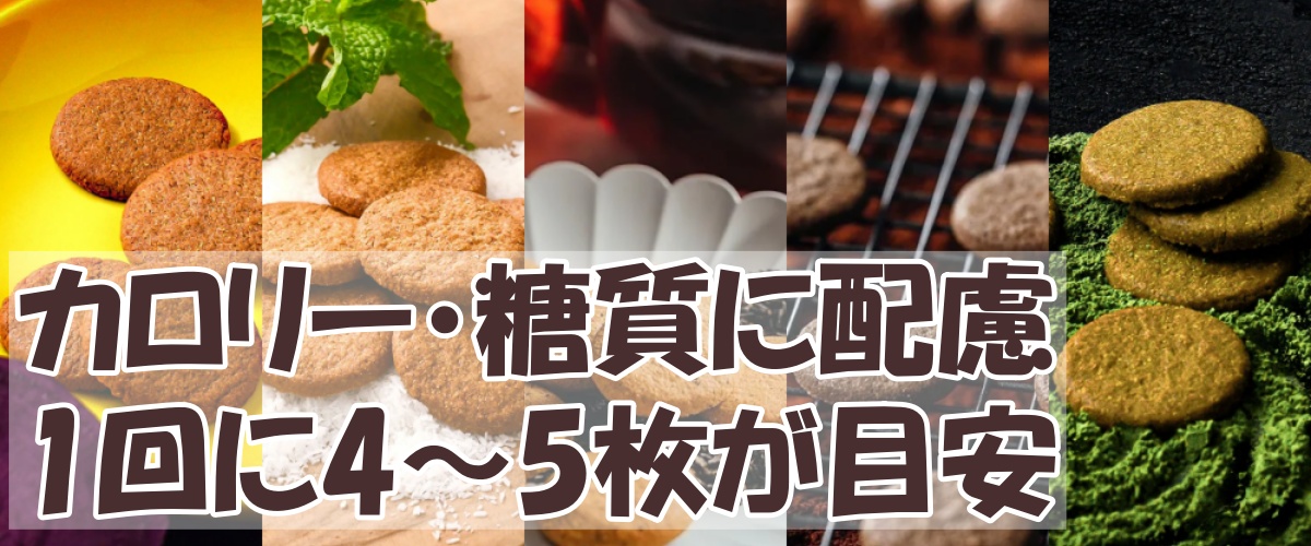 ベースクッキーは1枚46kcalと低カロリーだけど、ついつい何枚も食べちゃうとカロリーオーバーに。