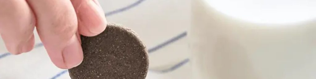 ベースクッキーと一緒にカロリーゼロの飲み物(水、お茶、ブラックコーヒー)を合わせると、満腹感がアップして食べ過ぎを防げます。
