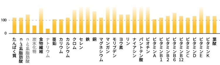 ※栄養素等表示基準値(18才以上、基準熱量2,200kcal)に基づき、1日分の基準値の1/3を100とした場合