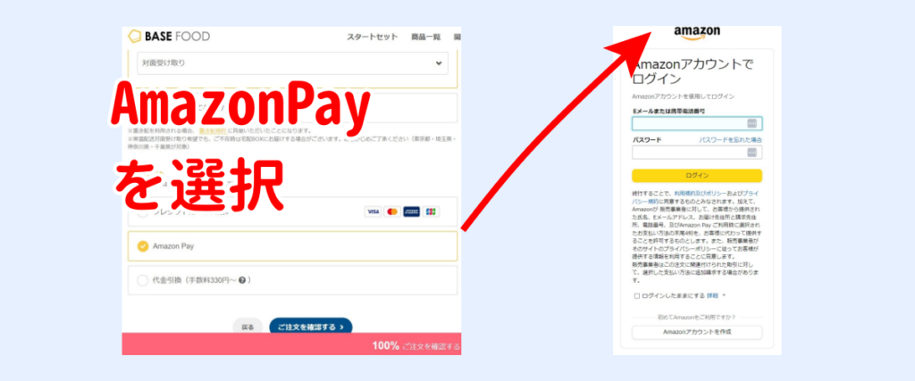 ベースブレッドの注文を進めていくと、注文のついでにAmazonPayのアカウントを作ることができます。