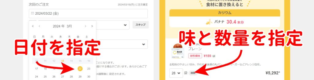毎月の注文は、希望のお届け日と受け取りたい数量を指定するだけです。