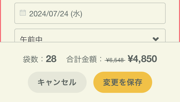 私の場合、残りが5日分(6~8袋ぐらい)になったら、カレンダーで日付を変更して次の注文をしています。