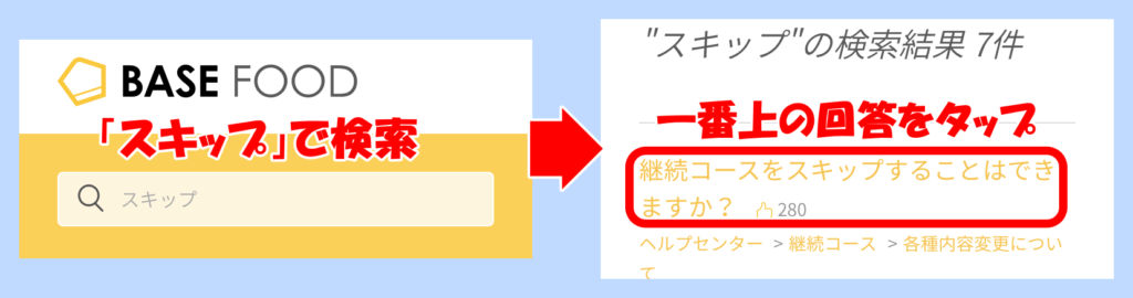(2)ヘルプセンターの検索窓に「スキップ」と入力し、出てきた一番上の回答を押します。