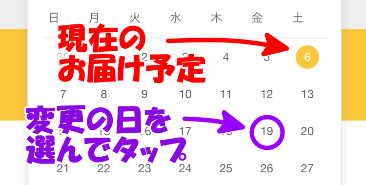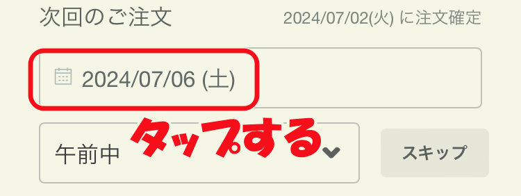 (2)次回のご注文の日付をタップしてカレンダーを表示させる