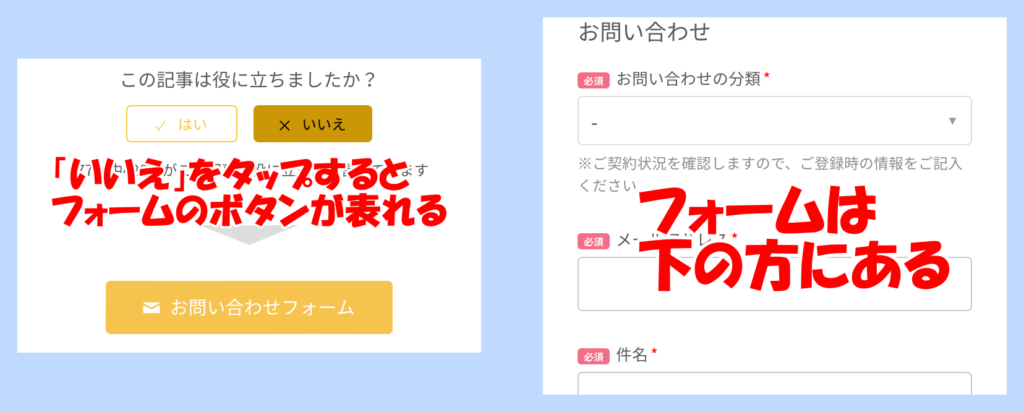 その下の「いいえ」を選択するとフォームのページが表示されるようになっています。