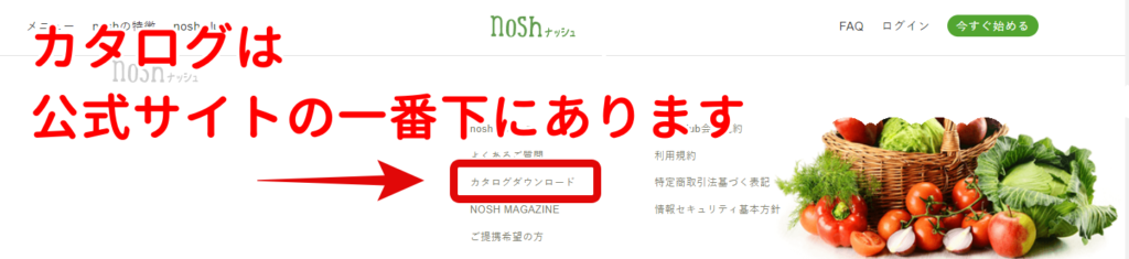 カタログの場所は公式サイトのトップページの一番下にあります。