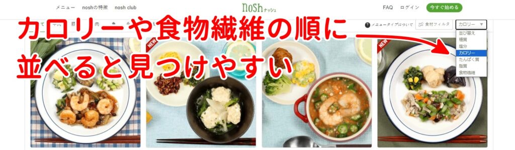 メニューを選ぶ際、「カロリーの少ない順」や「食物繊維の多い順」に並び替えてみてください。